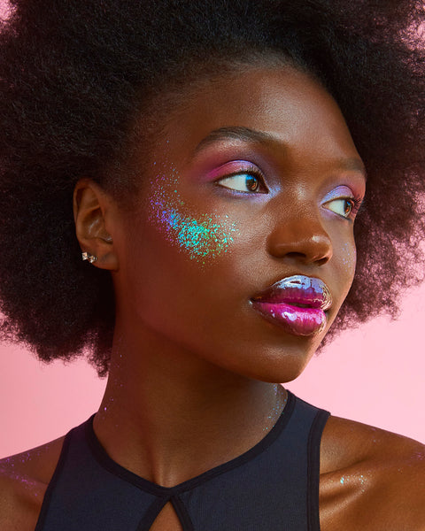 No flaking. No grit. No microplastic fallout. Just smooth, color-shifting body glitter that locks in place – until you want it to disappear.