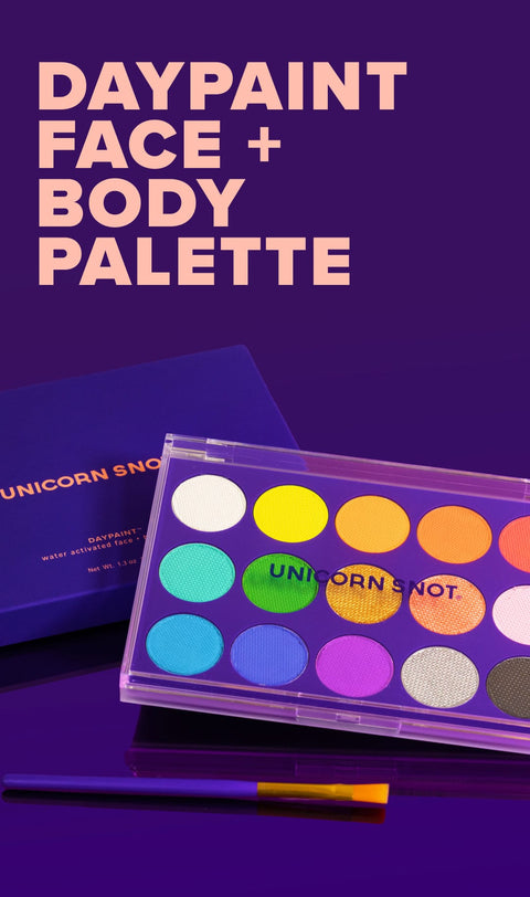 15 electric shades of water-activated face + body paint. Just dip, apply, and show off your one-of-a-kind looks.